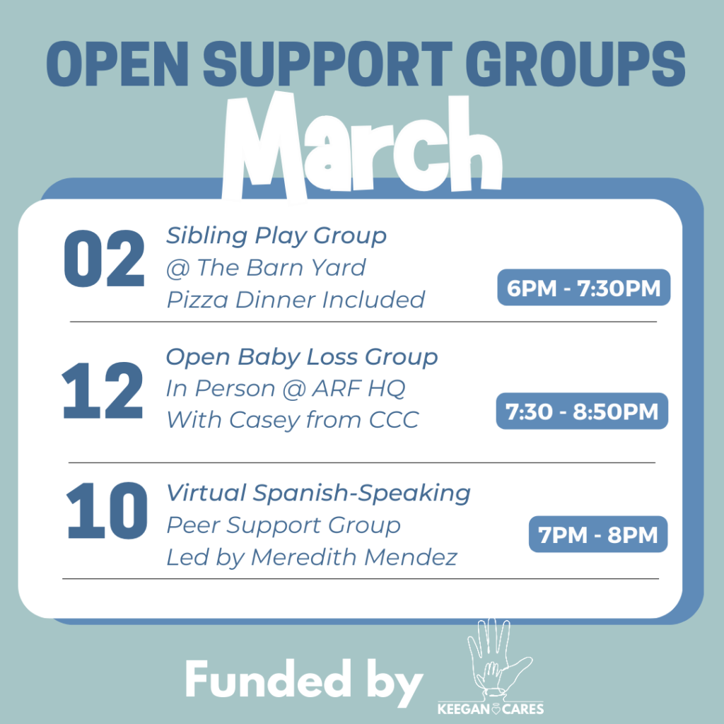Our monthly support groups are open to loss parents and free to attend thanks to funding through Keegan Cares